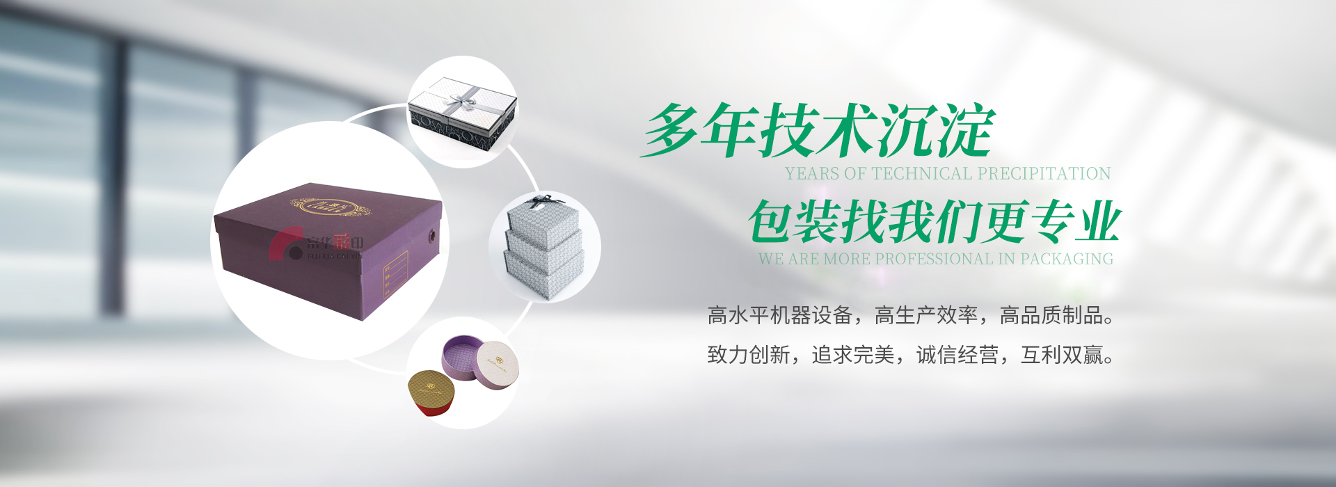 丹陽市富華包裝彩印有限公司坐落在歷史古鎮(zhèn)——丹陽市訪仙鎮(zhèn)。公司創(chuàng)建于1987年,占地面積6000平方米,建筑面積4000多平方米。公司擁有先進的電腦切紙機、05、08、四色膠印機、燙金機、復膜機、壓紋機、全自動壓痕機、上光機、單面瓦楞流水線、自動對裱機、半自動、全自動糊盒機等設備,為客戶提供從產(chǎn)品設計——制版印刷——印后精加工等一體化配套服務,專業(yè)生產(chǎn)彩印包裝、樣本制作、精美禮盒、包裝手提袋及各種印刷業(yè)務?,F(xiàn)已成為丹陽地區(qū)設備配套較齊全的印刷包裝企業(yè)。